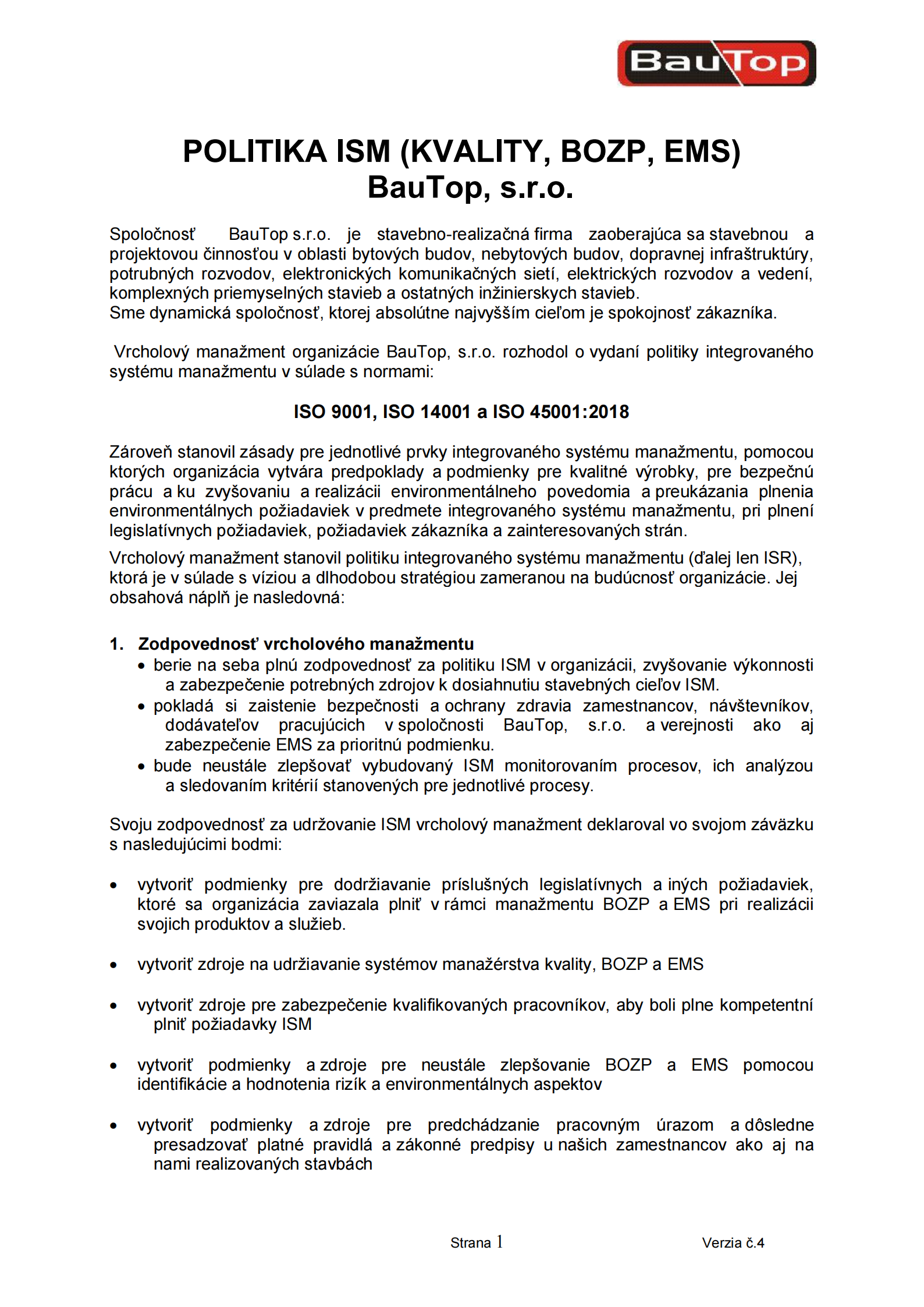 Spoločnosť BAUTOP s.r.o. je stavebno-realizačná firma, zaoberajúca sa kompletnou obnovou bytových domov. Pôsobí na trhu od roku 2008 s centrálami v Spišskej Novej Vsi a v Bratislave.